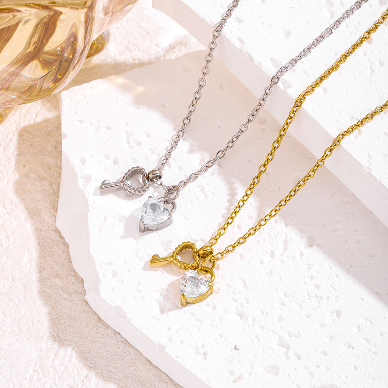 2025 New Online Celebrity Ins Love Key Necklace Women's Simple Niche Light Luxury Girlfriend Gift Collarbone Titanium Steel Necklace