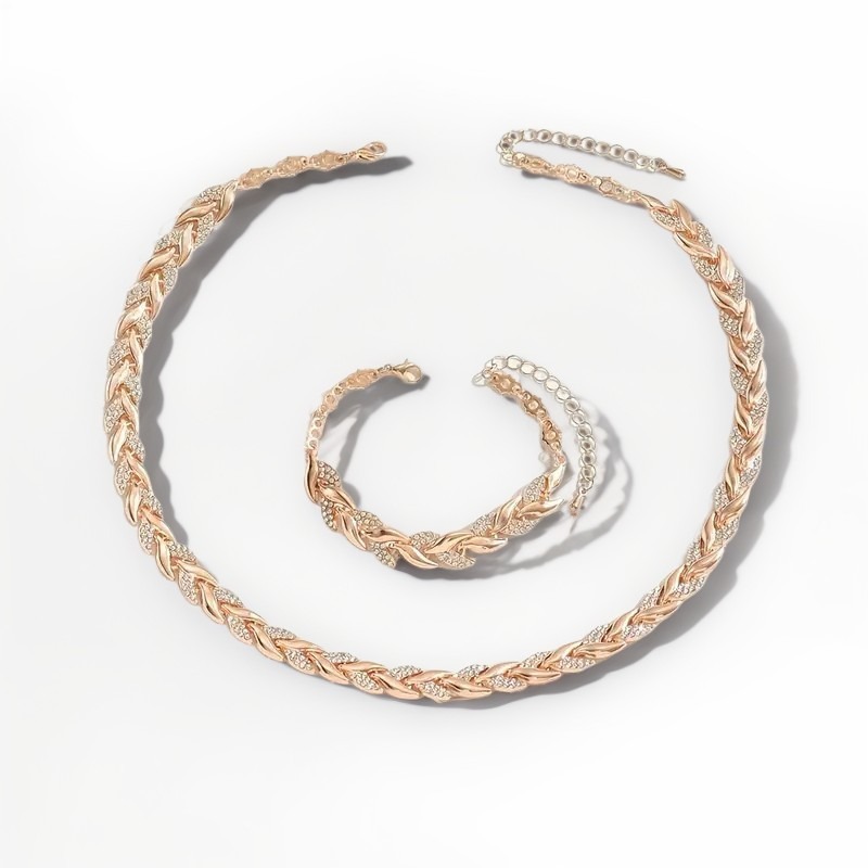 Cross-border new jewelry suit necklace bracelet fishtail design full diamond leaves necklace bracelet wholesale
