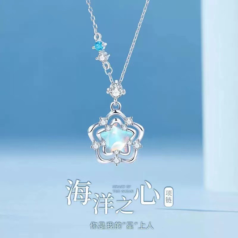 Ocean Heart Necklace Women's Light Luxury Niche Design Versatile Temperament Clavicle Chain Valentine's Day Gift for Girlfriend