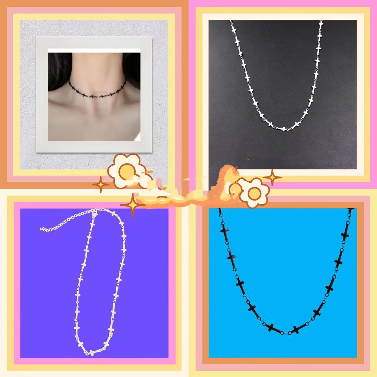 South Korea fashionable all-match metal necklace female temperament niche design ins cold style cross necklace clavicle chain