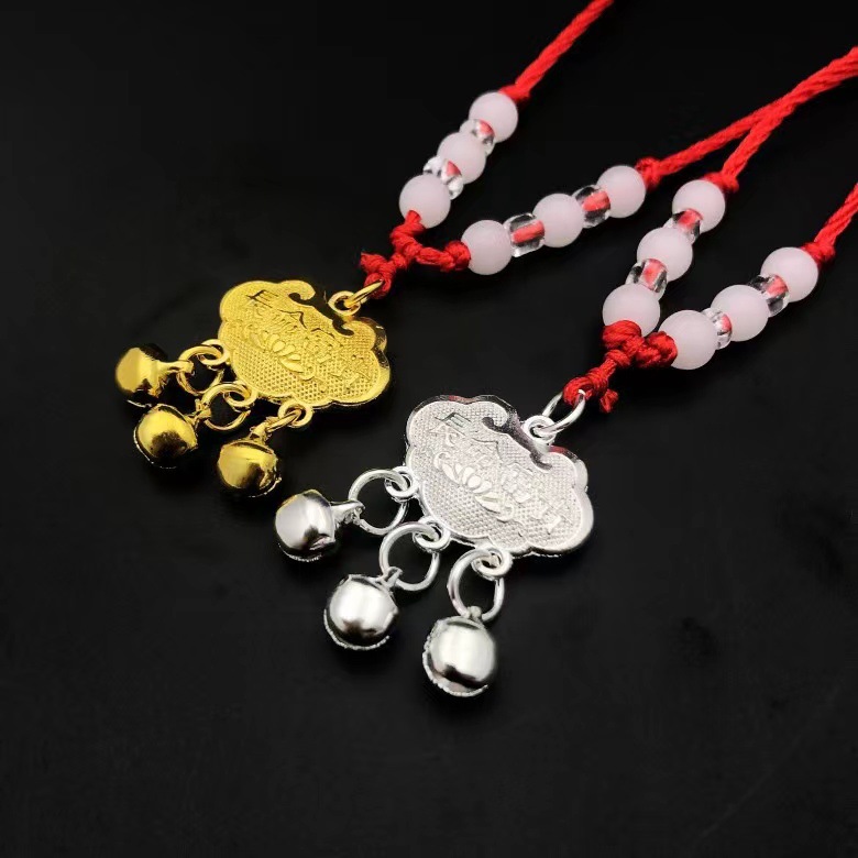 Wholesale Baby Baby Long Life Lock Necklace Access Safe Silver Gold Plated Pendant Children's Rich Bell Lock