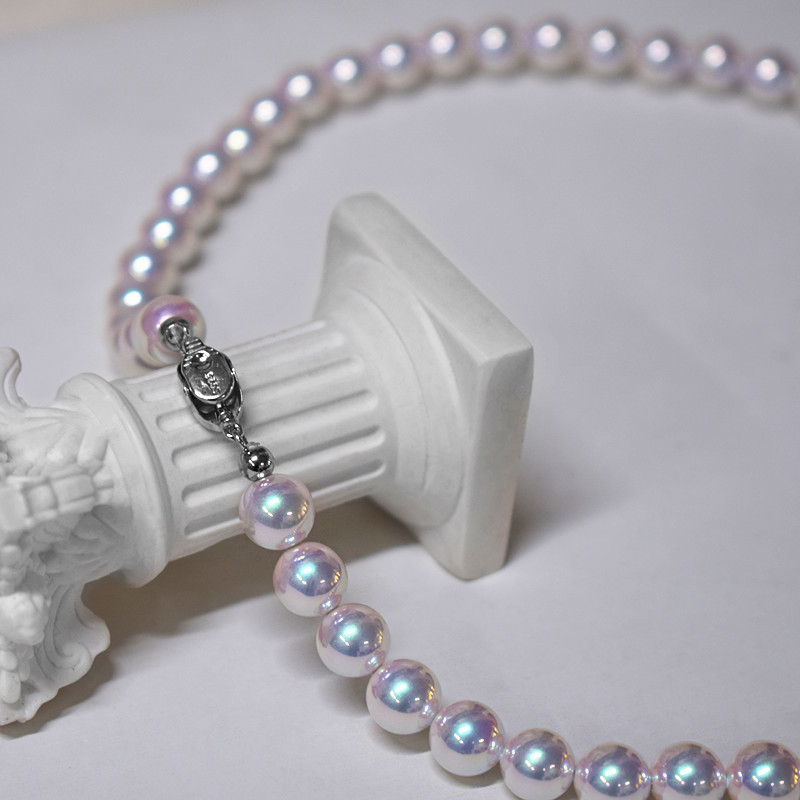 S925 Silver Aurora Full Color Upgraded Version 6-12mm Mother-Of-Pearl Heavenly Beads Perfect Round Extremely Bright Pearl Necklace Wholesale