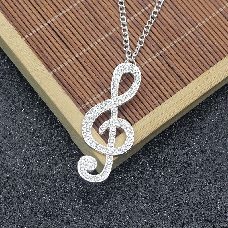 European and American Fashion Simple Full Diamond Note Necklace Women's Long Sweater Chain Versatile Accessories Pendant Pendant
