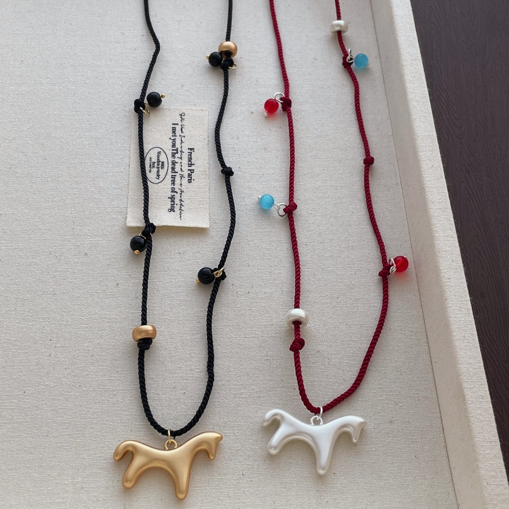 Niche Design High-End Fashionable Pony-Shaped Red Braided Rope Necklace Women's New Chinoiserie Retro Sweater Chain Necklace