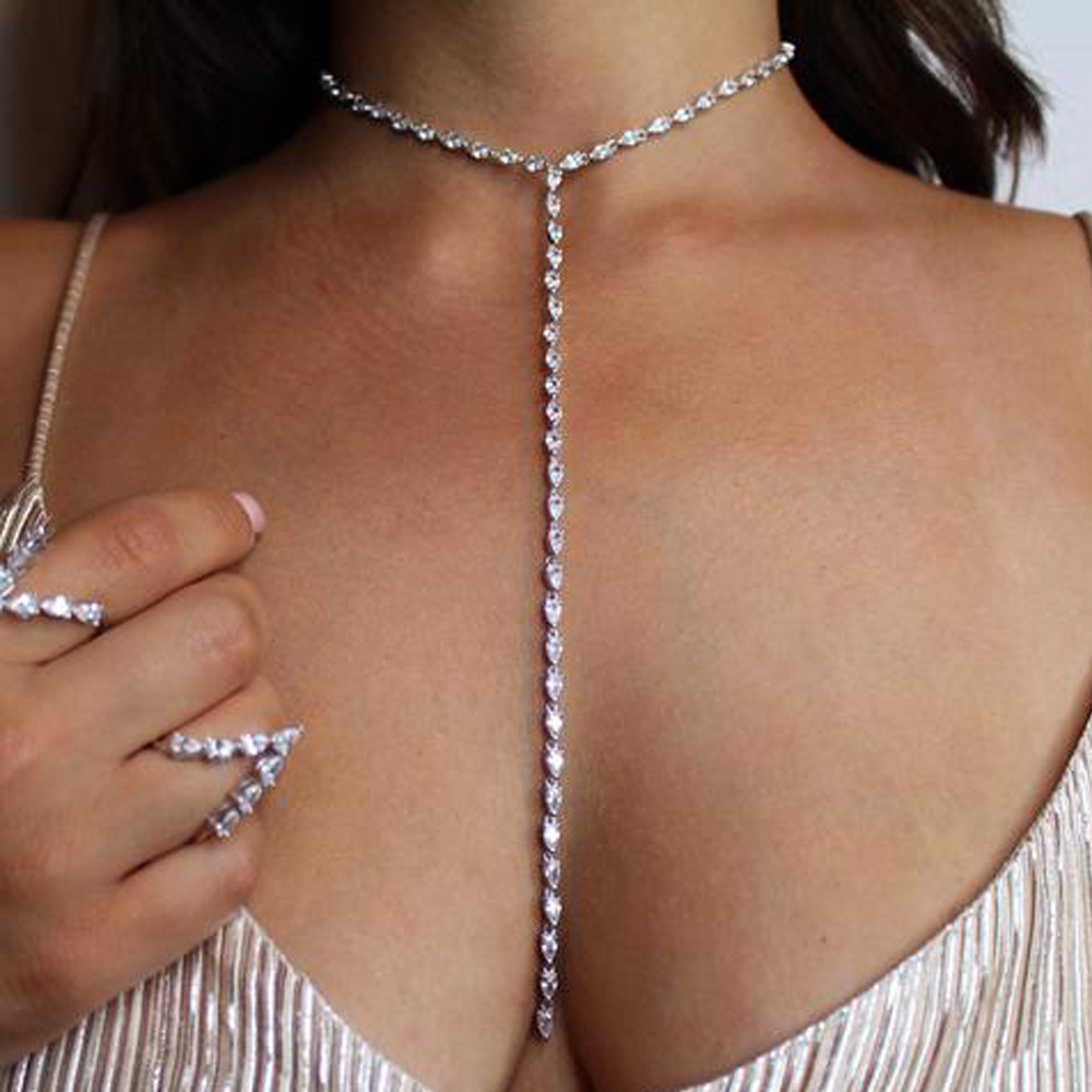 Cross-Border Popular Accessories, Personalized Long Tassel Zircon Necklace, Luxurious and Versatile Women's Full Diamond Necklace, Necklace