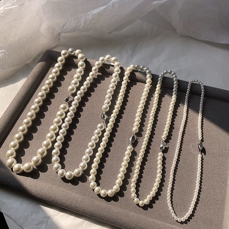 Ingot Buckle Glass Pearl Niche Light Luxury Choker Collarbone Chain Necklace Internet Celebrity Hot-Selling Jewelry Ns038