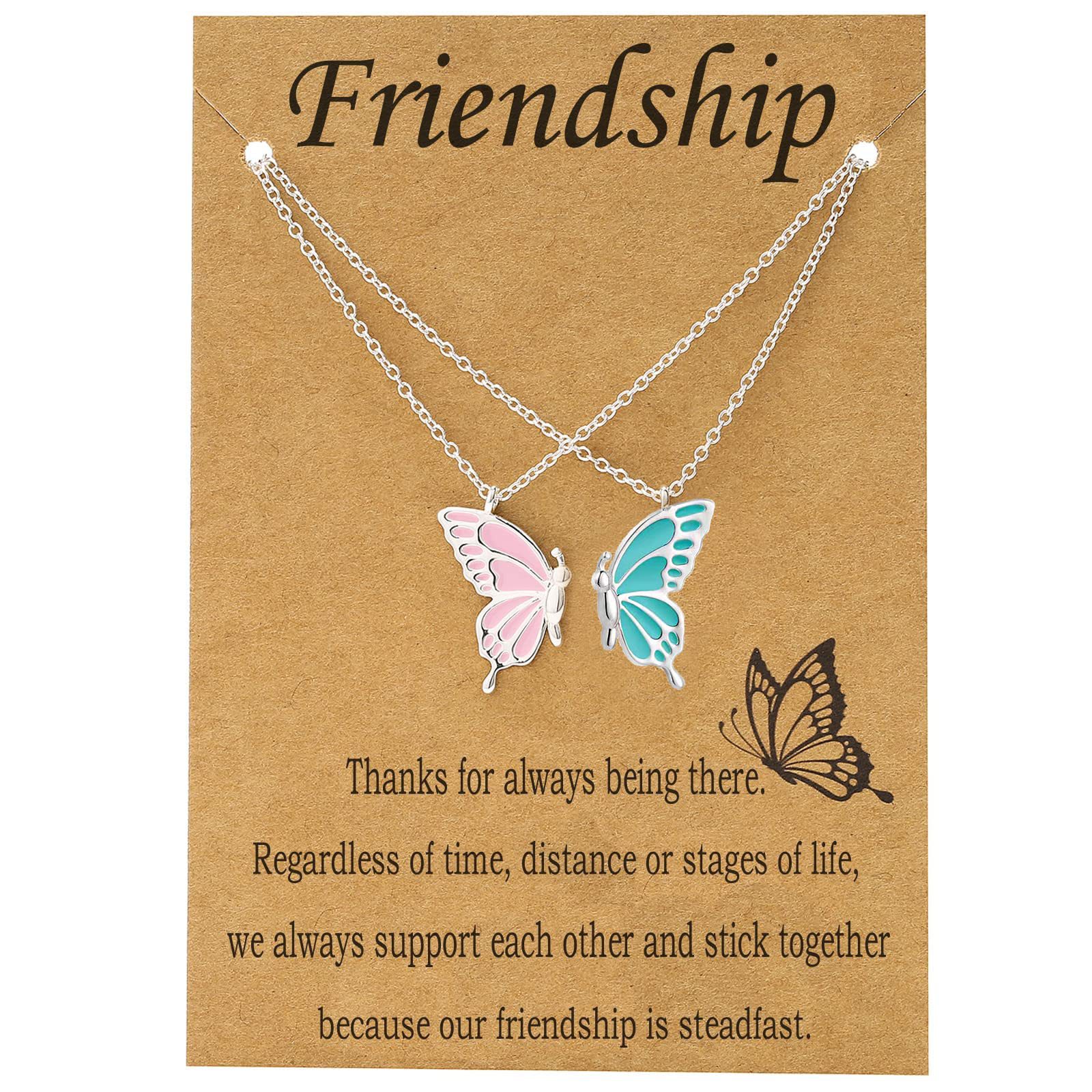 Women's Butterfly Necklace Set Gold Chain Butterfly Pendant Best Friend Gift Necklace Pink Blue Butterfly Necklace