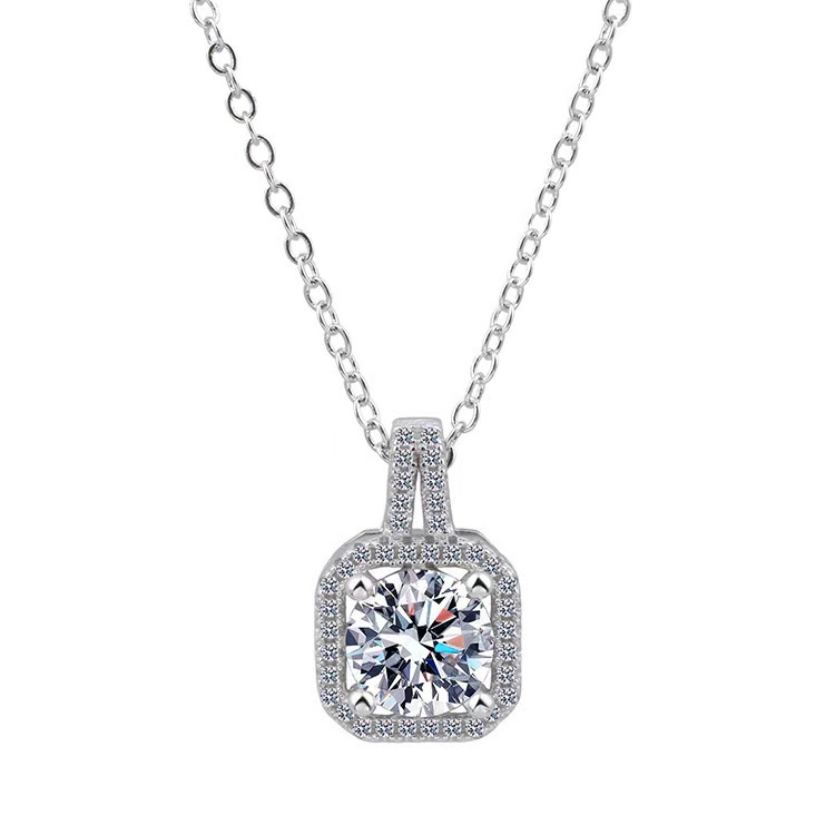2025 New Fashion Square Diamond Necklace Female Elegant All-match Simple Luxury Full Diamond Sugar Pendant Necklace Jewelry