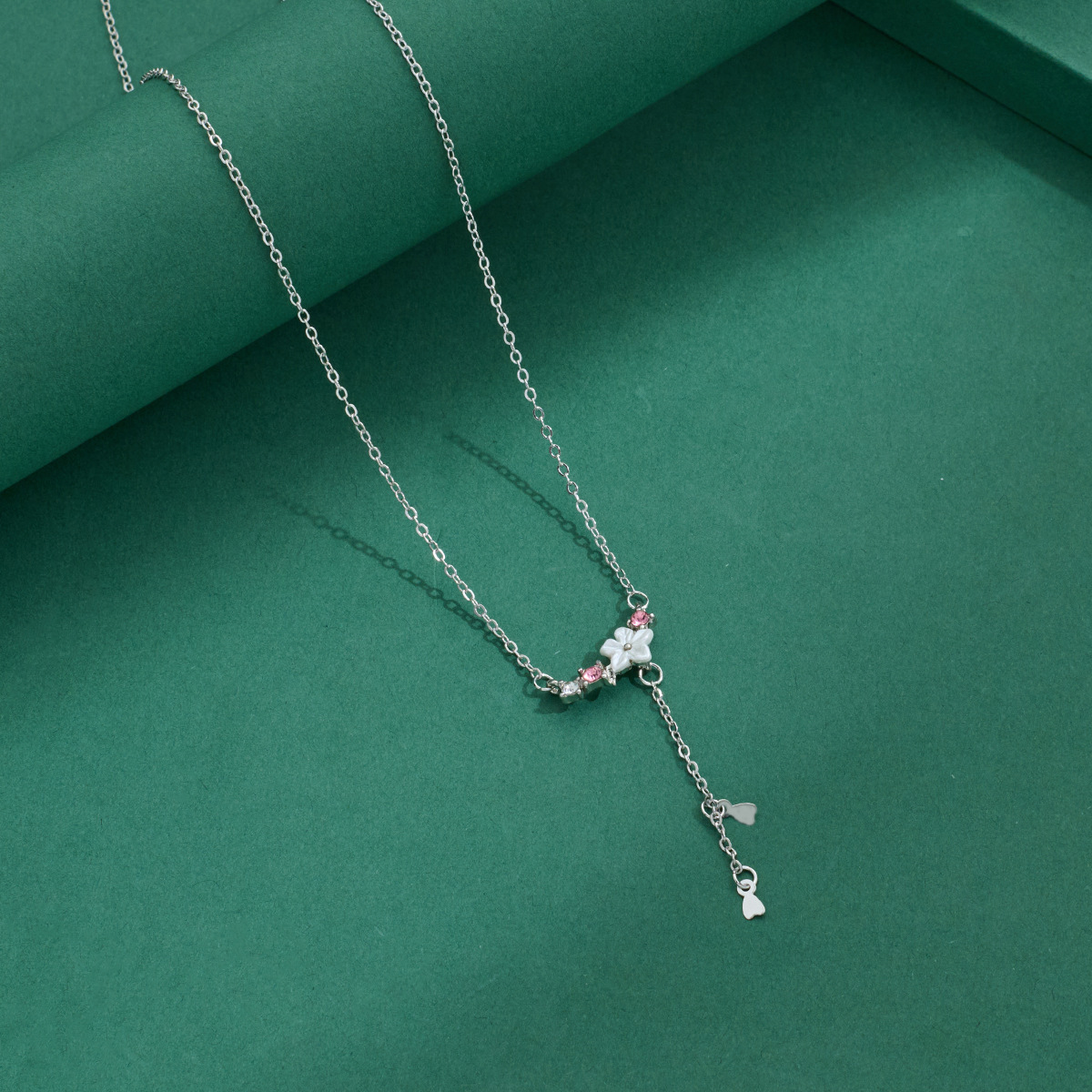 Shell Cherry Blossom Necklace Women's 925 Silver Korean Style Sweet and Fresh Mori Style Design Elegant Women's Clavicle Chain Girlfriend Gifts