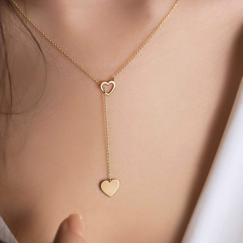 Korean Style Heart Necklace for Women Ins Necklace Simple Long Heart-Shaped Pendant Clavicle Chain Jewelry