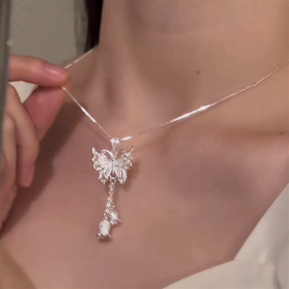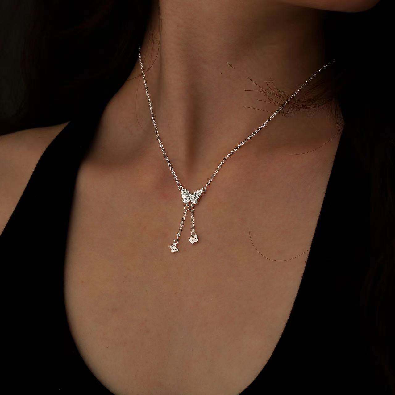 New Personalized Zircon Tassel Butterfly Necklace Women's Fashion Versatile Niche Design Light Luxury High-End Clavicle Chain Wholesale