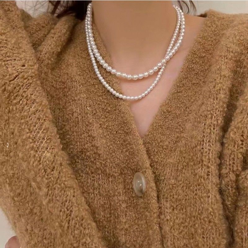 Double layer imitation pearl necklace fashion ins style necklace women's new necklace stacked one high and one low 2023