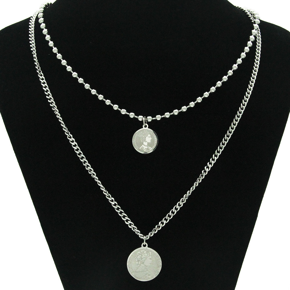 European and American Ins Street Retro Double Layer Matching Pendant Necklace Trendy Women's Bead Chain Cuban Chain suit Clavicle Chain