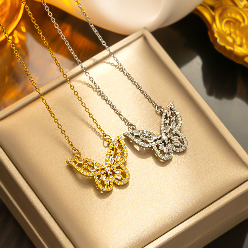 Zircon Butterfly Necklace Korean Fashion Design Diamond Pendant Personalized Trendy ins Elegant Clavicle Chain Necklace Women