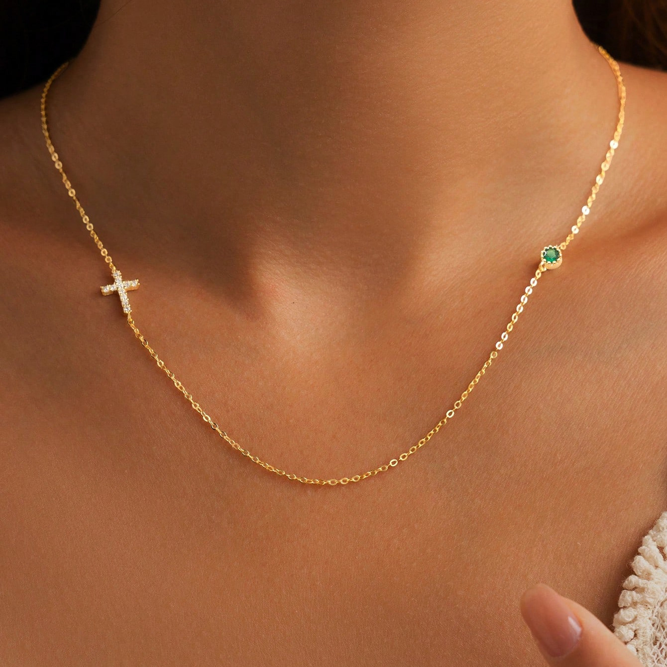 A 925 Silver Niche High-End Zircon Cross Emerald Necklace Valentine's Day Birthday Gift Jewelry
