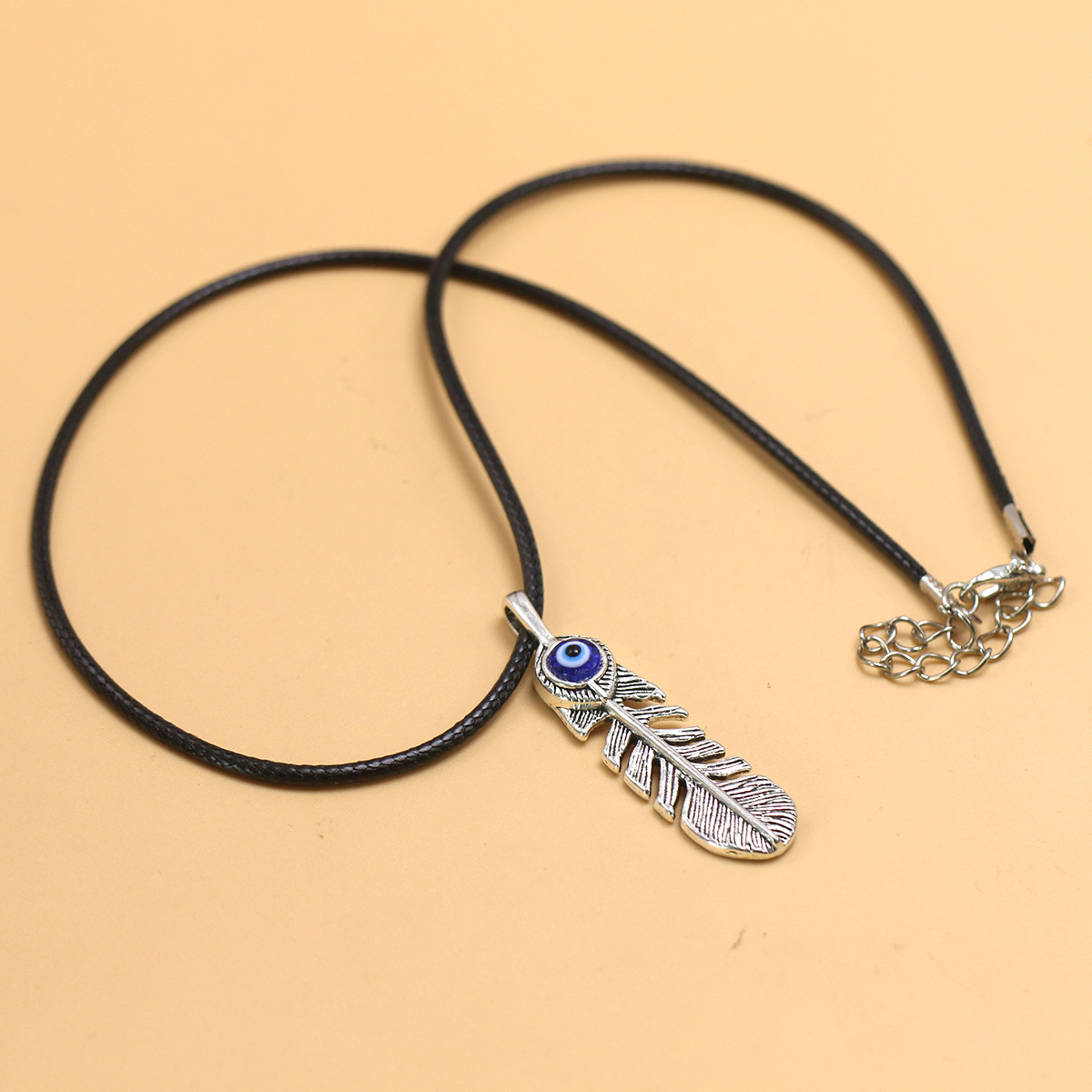 DIY Alloy Jewelry Retro Cut Out Animal Feather Blue Devil's Eye Charm Necklace Cross-Border Necklace