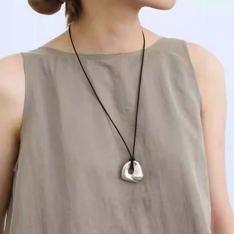 French Minimalist Niche Retro Irregular Abstract Hollow Pendant Necklace Minimalist Style Black Rope Adjustable Sweater Chain