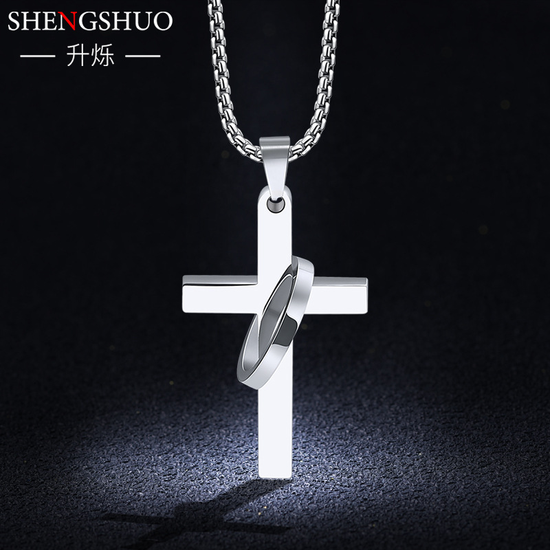 Cross ring titanium steel men's necklace stainless steel pendant does not fade European and American jewelry wholesale simple Joker tide