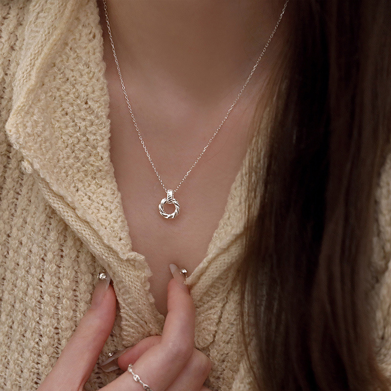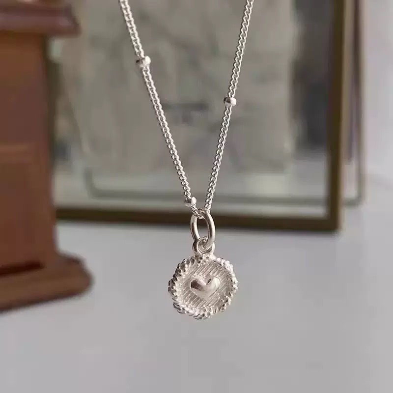 Korean Style Design Simple Round Heart Necklace for Women, Fashionable High-End Exquisite Retro Silver Necklace Wholesale Delivery