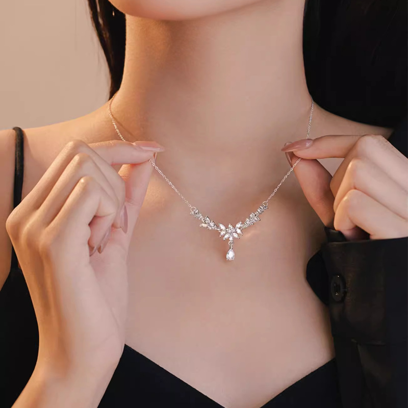 S925 sterling silver water drop moissanite necklace light luxury fashion all-match simple high-end pendant clavicle chain cross-border