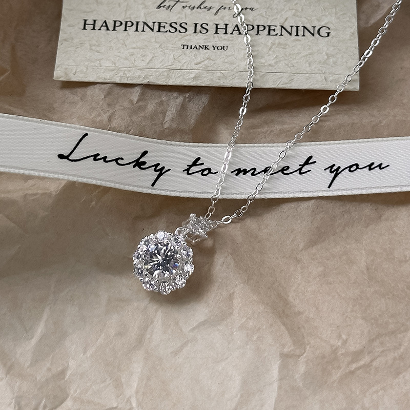 925 Sterling Silver Necklace Women's High-End Accessories Accessible Luxury Niche Jewelry Super Flash Zircon Pendant Necklace Does Not Fade