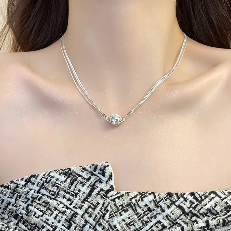 French Style Light Luxury Women's Niche Personalized Design Diamond Ball Magnetic Suction Necklace Iron Suction Stone Advanced Feeling Stacked Belt Stitching Neckchain