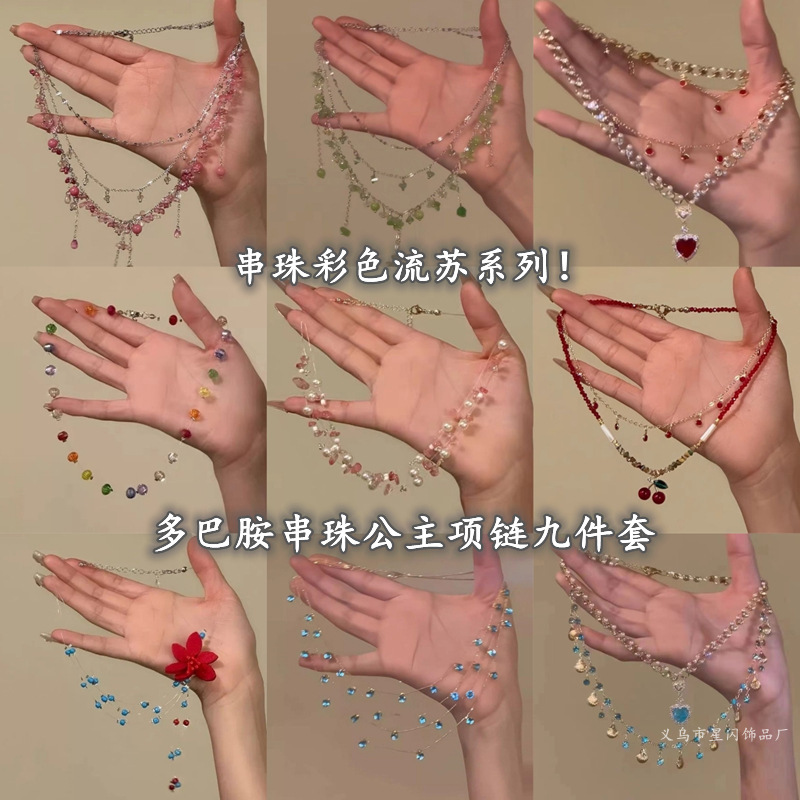 Super Fairy Atmosphere Pink Beaded Stacked Necklace Female Forest Style Sweet Clavicle Chain Elegant Niche Choker Necklace