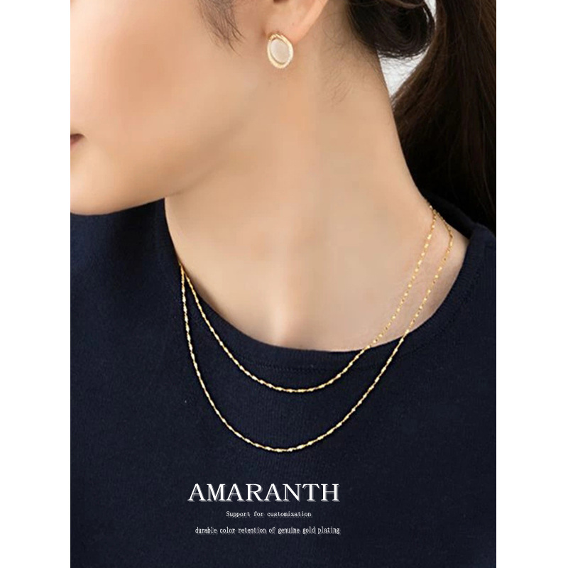 Super thin! 40cm 45cm sparkling starry fine necklace female clavicle chain titanium steel plated 18K gold