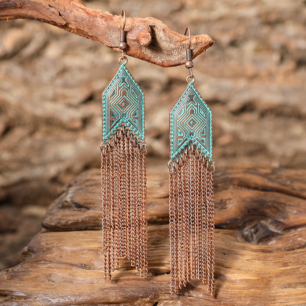 European and American Exaggerated Earrings Cross-border Geometric Earrings Temperament Long Arrow Chain Retro Women's Earrings Tassel Earrings