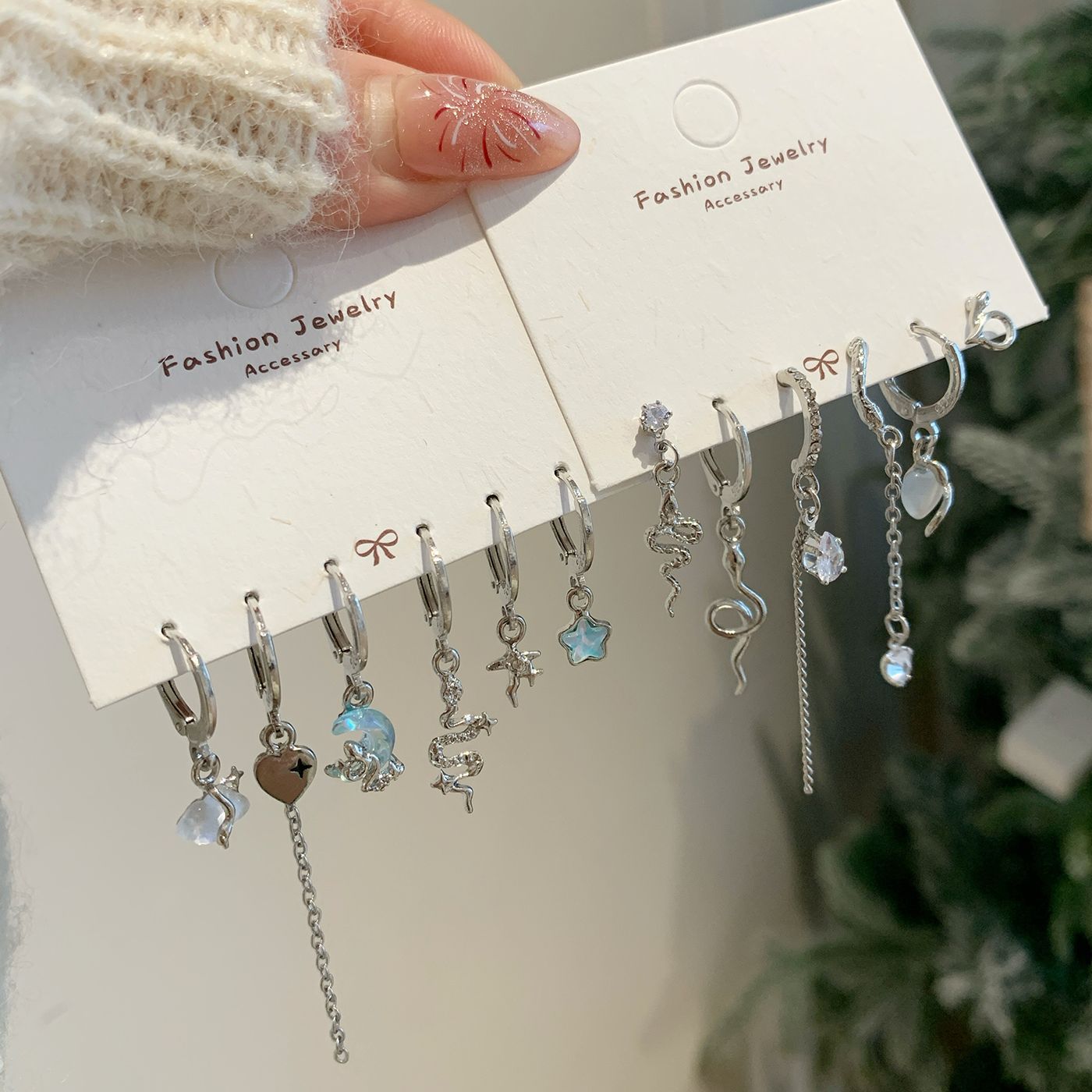 New Aurora Magic Blue Snake Ear Buckle suit Women's Silver Needle Irregular Distinctive Earrings Sweet Cool Minimalist Earrings