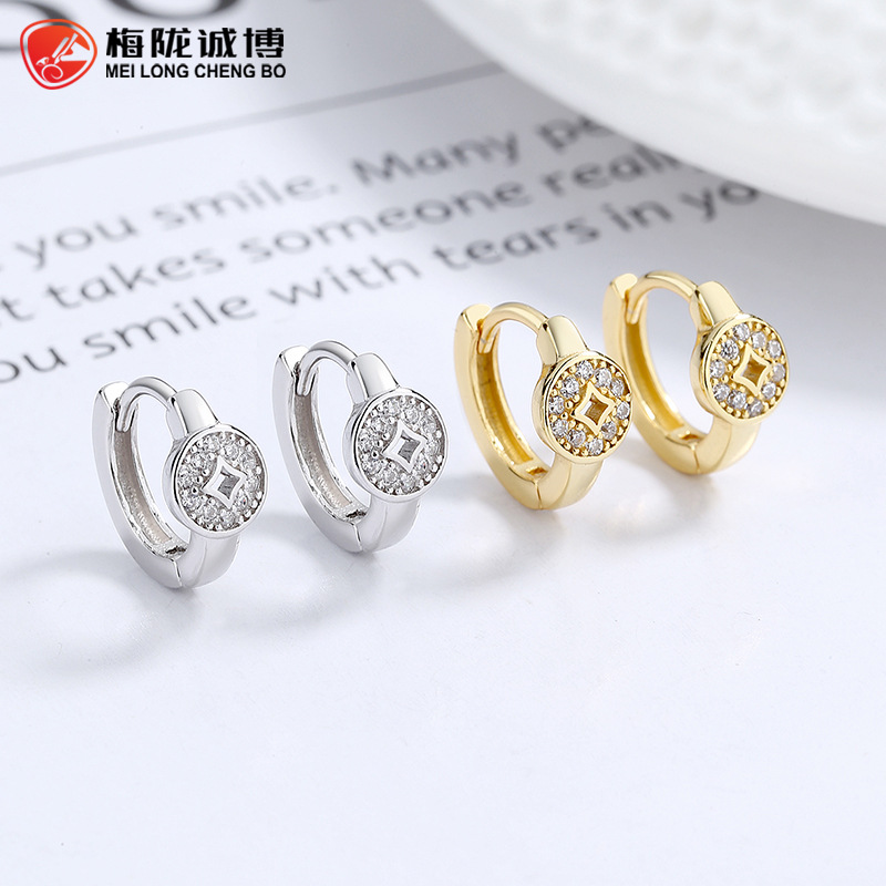 925 sterling silver copper coin earrings women's new fashion Diamond-embedded coin trendy earrings personalized design ins style ear jewelry