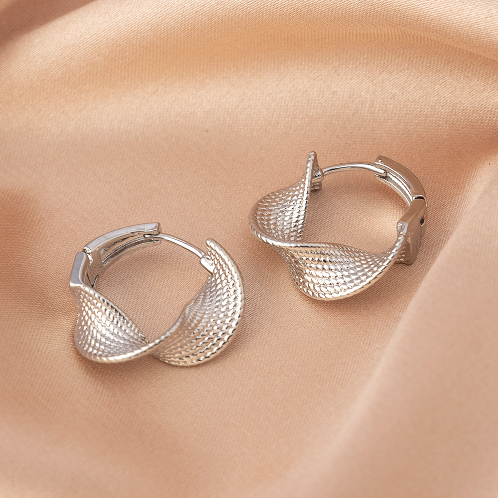 s925 sterling silver texture ring ear buckle Japanese and Korean simple fashion ins niche design geometric ear ring ear jewelry