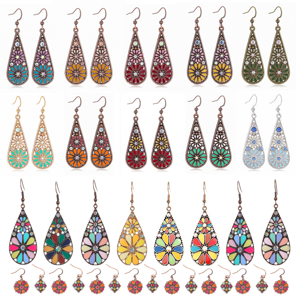Cross-border Bohemian Drop Earrings Earrings with Diamond Vintage Old Multi-color Sunflower Ear Jewelry Wholesale