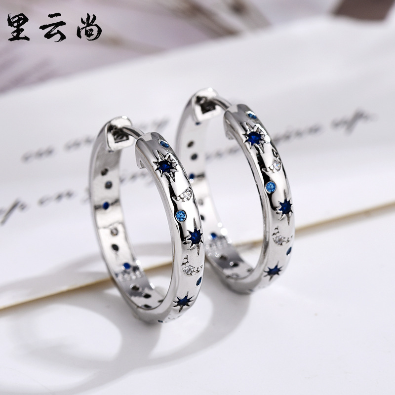 Cross-border hot-selling ring s925 sterling silver men's and women's diamond-embedded starry sky bright earrings niche design personality