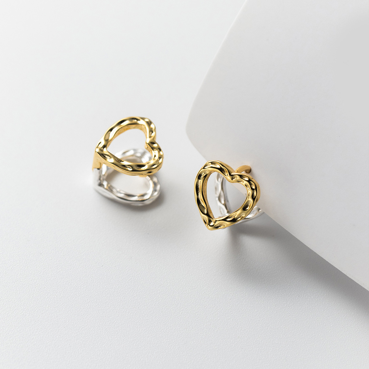2026 Exquisite and Fashionable Korean Style Two-Tone Heart Hollow Earrings Ins Style Elegant Design Earrings for Women Wholesale