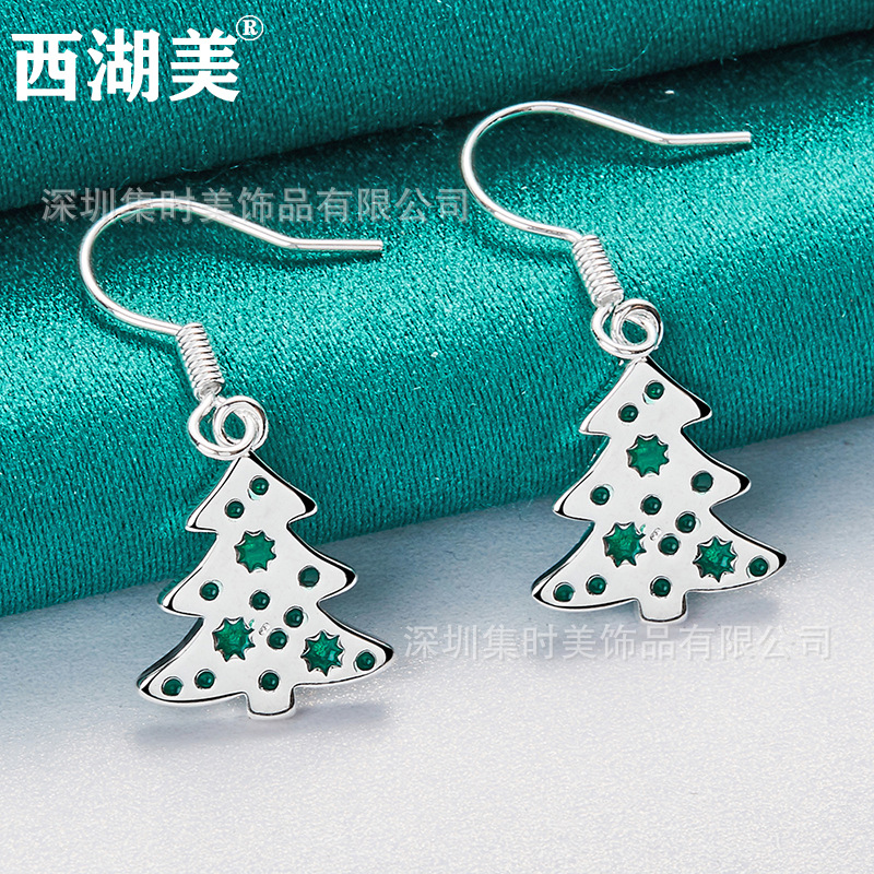 West Lake beautiful silver Christmas tree hollow earrings female Jewelry earrings jewelry