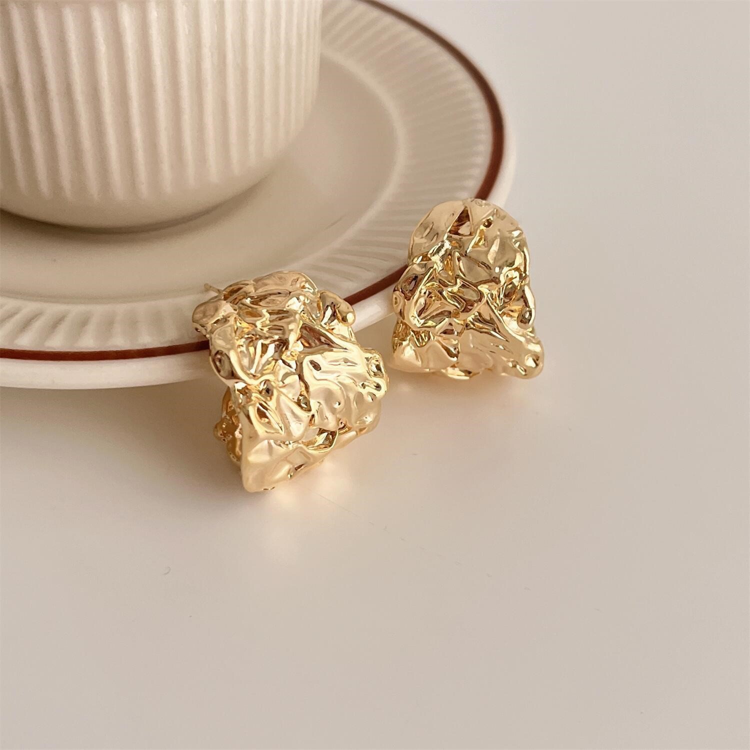 European and American personality boast geometric irregular pleated metal earrings fashion retro light luxury heavy industry explosions unique earrings