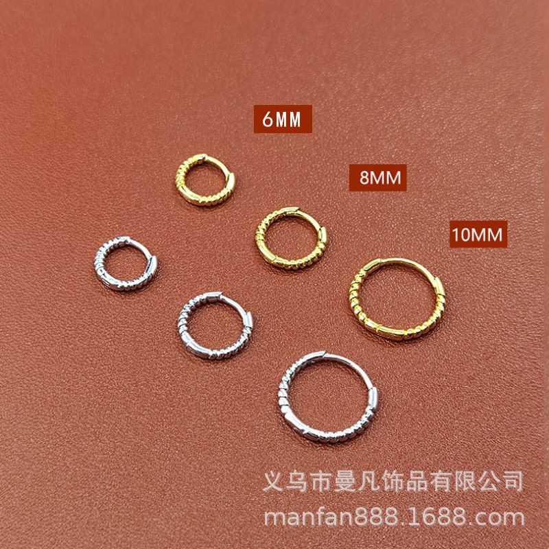 S925 Tremella Buckle Men and Women Couples Striped Auspicious Earrings Widened Atmospheric Silver Birthday Gift