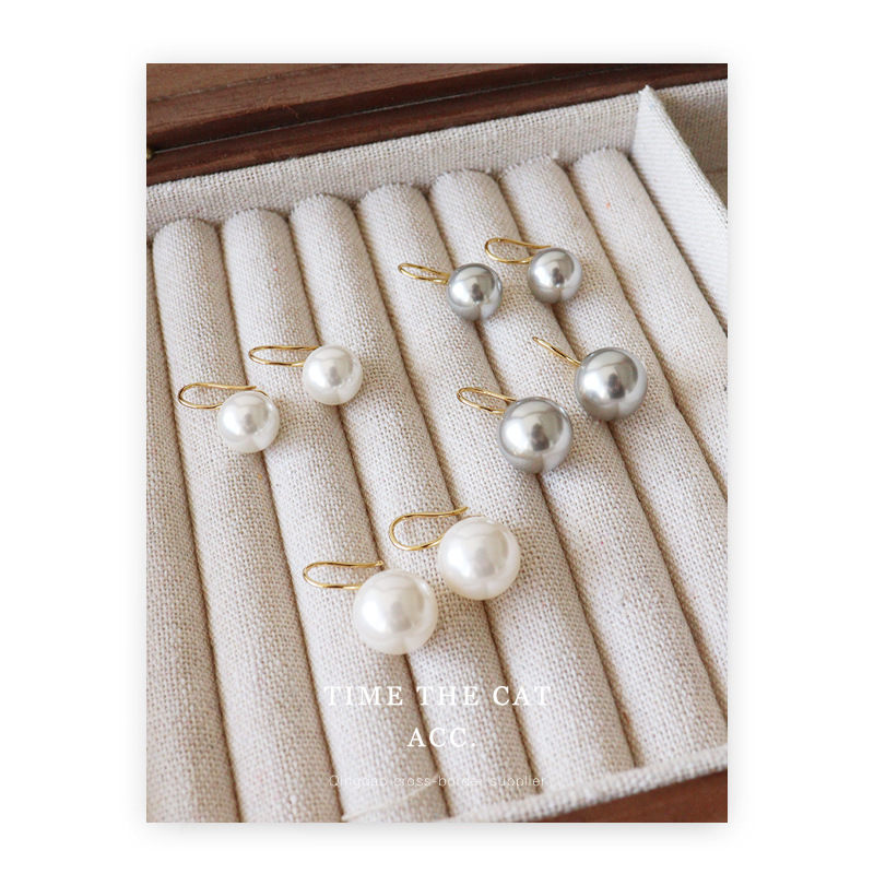 Classic Round Zhenduo Hemp White High Heels Vintage Earrings Austria Shijia Pearl 925 Silver Plated Ear Hook