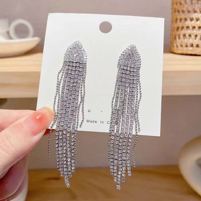 European and American Exaggerated Long Earrings 2023 New Fashionable Full Diamond Tassel Earrings for Women