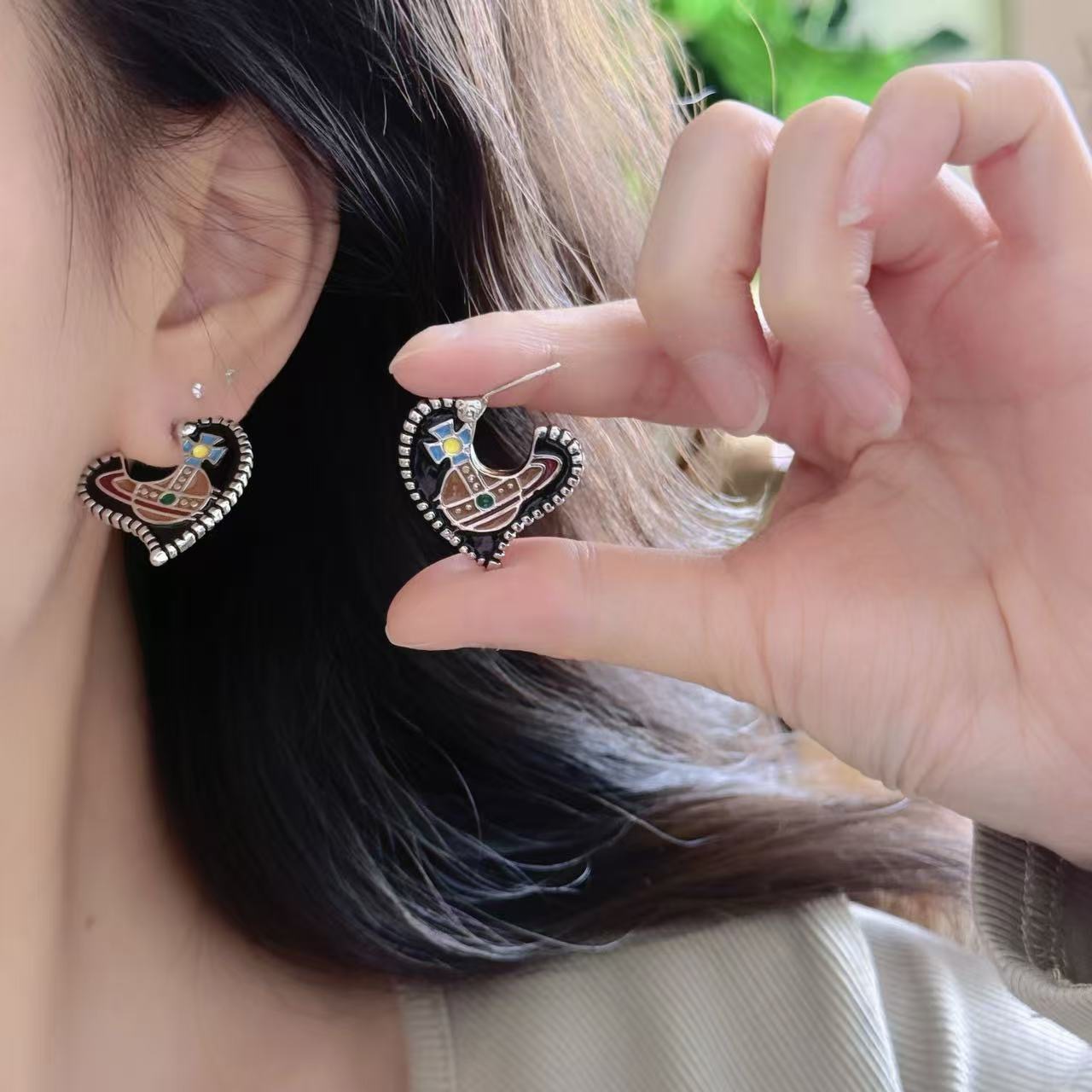 Colorful Drip Glaze Painted Gear Heart Saturn Earrings for Women Niche Retro Peach Heart Fashion Elegant Versatile Earrings