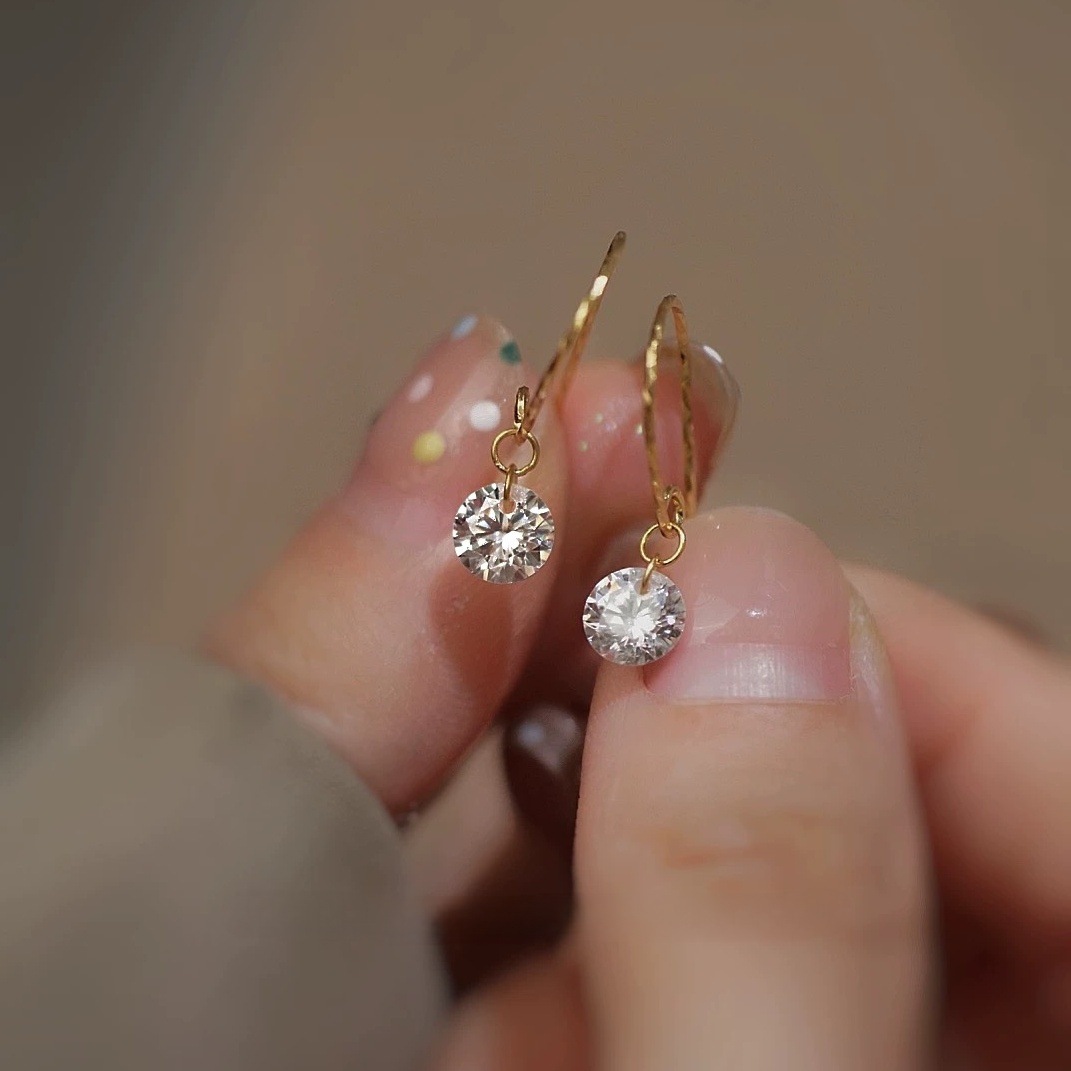 S925 Sterling Silver Plated 14K Gold Classic Simple Loose Diamond Earrings Exquisite Niche Design Single Diamond Earrings Wholesale