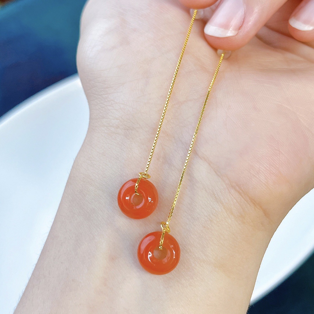 Natural South Red Donut Earrings 925 Silver Gold Plated Earrings Retro Temperament Chinese Style Live Supply Earrings