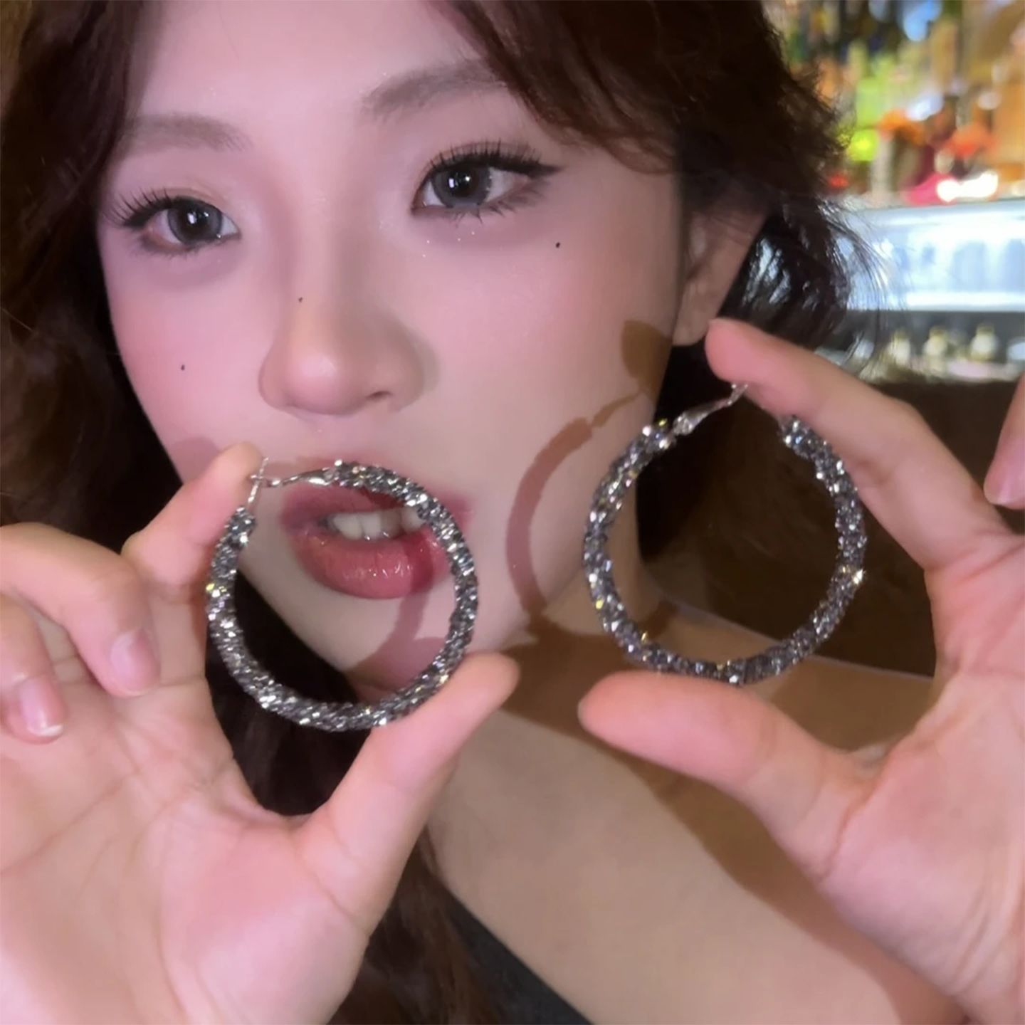 925 Silver Needle Autumn and Winter Slimming Elegant European and American Exaggerated Geometric Earrings with a High-End Feel and Simple Large Hoops