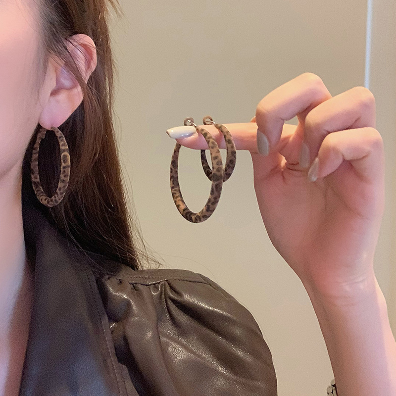 Retro Leopard Print Hong Kong Style Hoop Earrings for Women 2025 New Hot Style Fashionable Exaggerated Earrings High-End Elegant Earrings