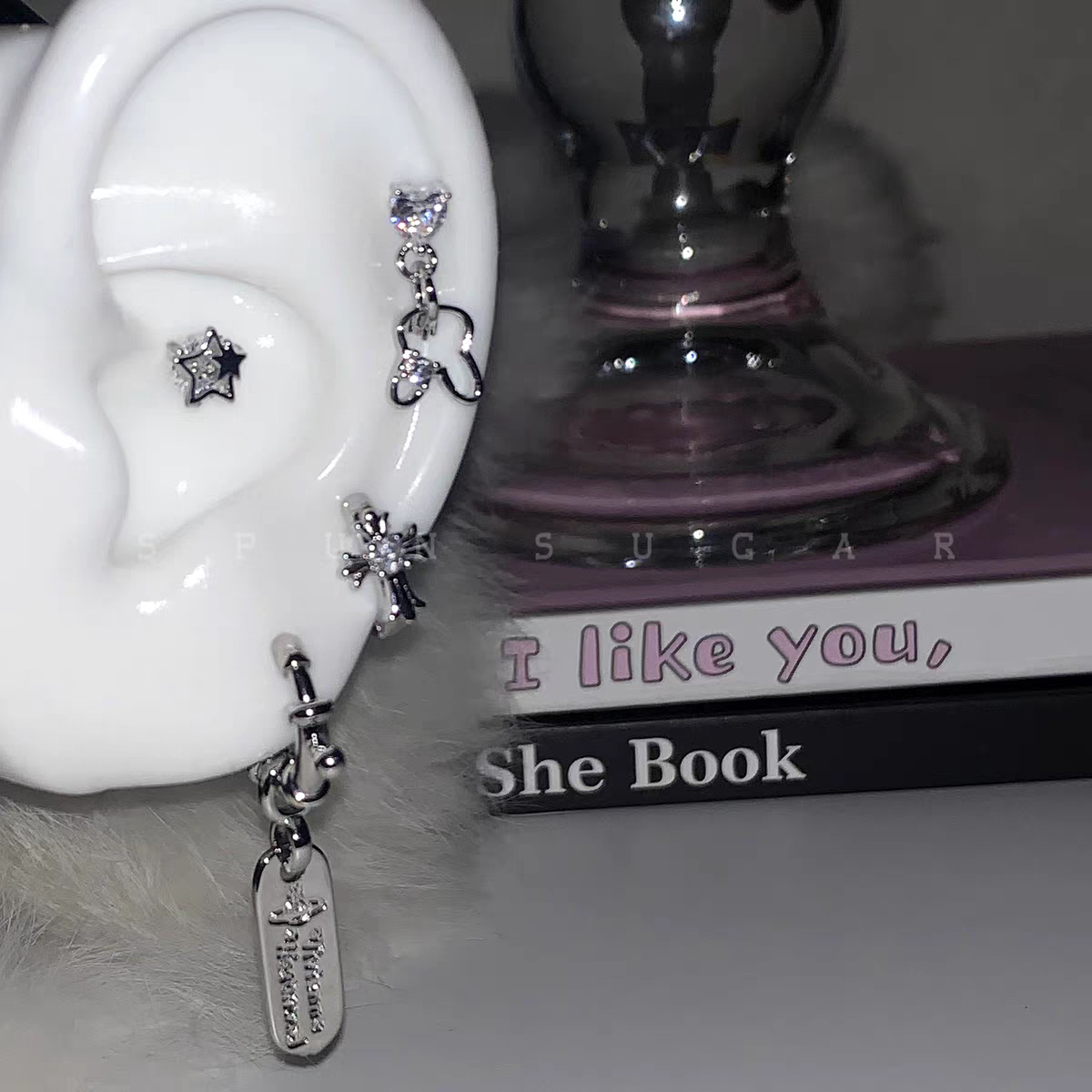 New Crow Cross Earrings Star Rabbit Ear Bone Studs Ear Cochlea Studs Saturn Letter Square Pendant Earrings