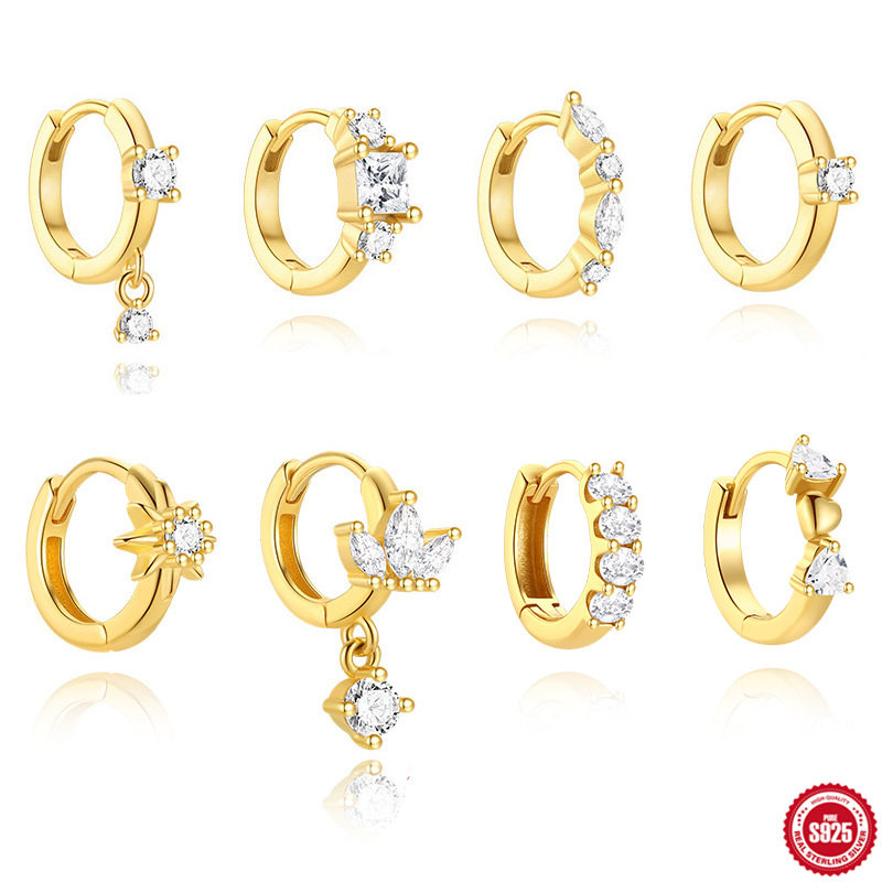 1 full-body s925 silver electric 24k gold ear ring tremella buckle smooth earrings Women's Small Ring Jewelry European and American fashion