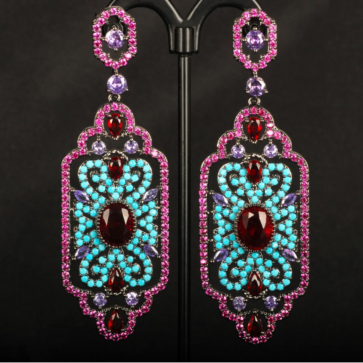 Luxurious High-End Exaggerated Plant Flower Earrings European and American Heavy Micro-Paved Zircon Palace Retro Flower Earrings