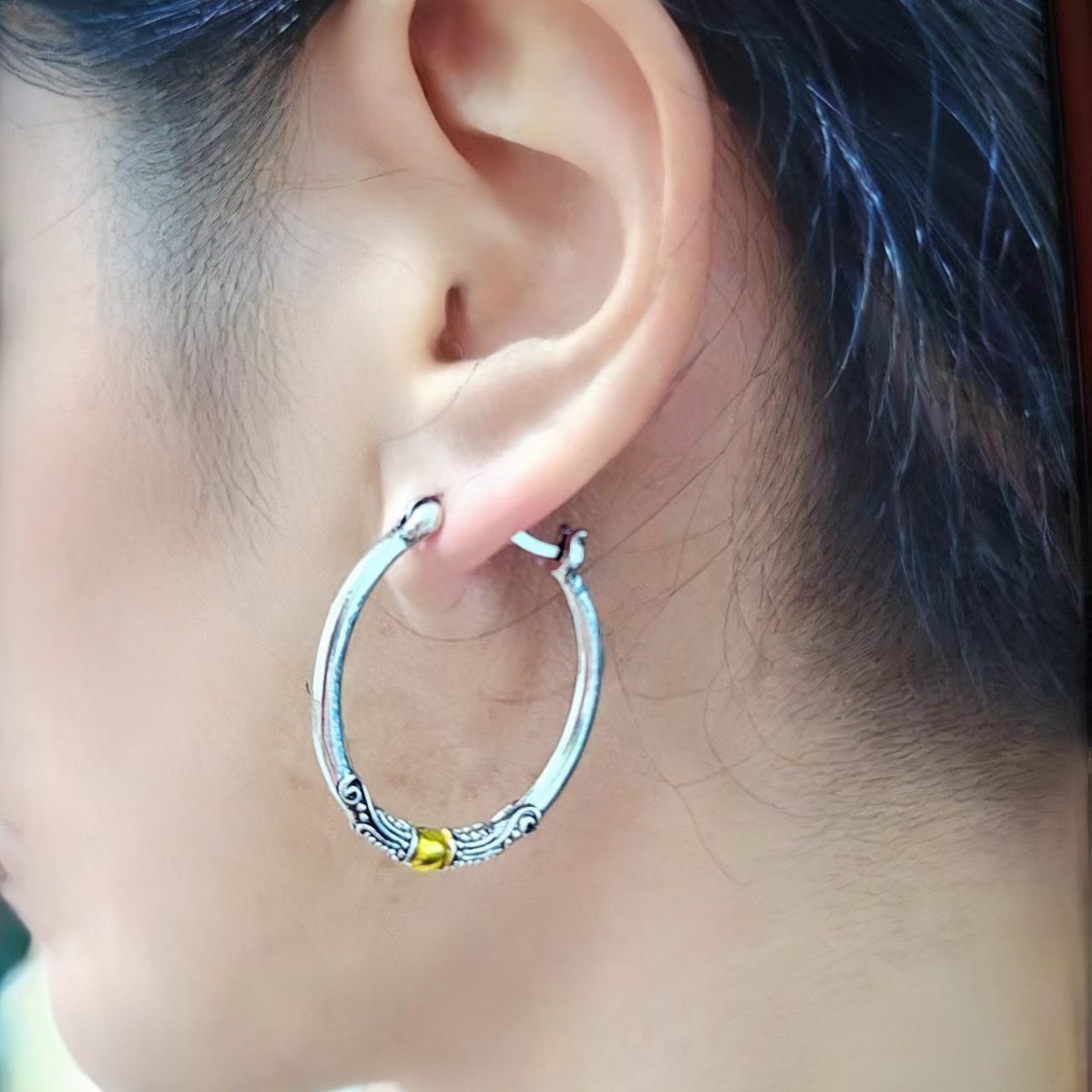 Hot Selling Retro Two-Color Hoop Earrings Carved Pattern Ear Hooks Exaggerated and Fashionable Versatile Women's Earrings Direct Sale