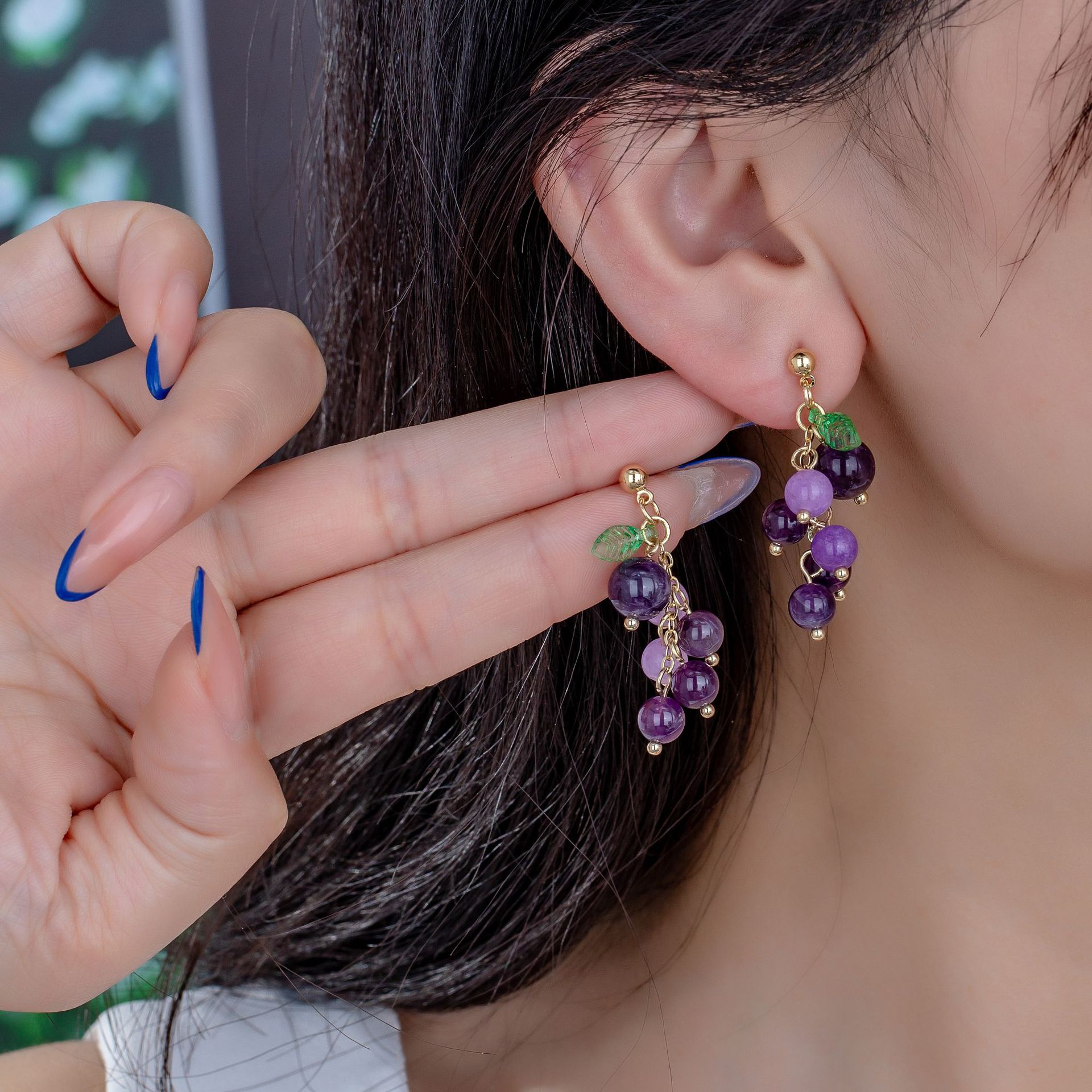 Cute Fruit Summer Grape Earrings 925 Silver Pin Earrings Without Ear Holes Ear Clip Women's Mori Sweet Street Photograph